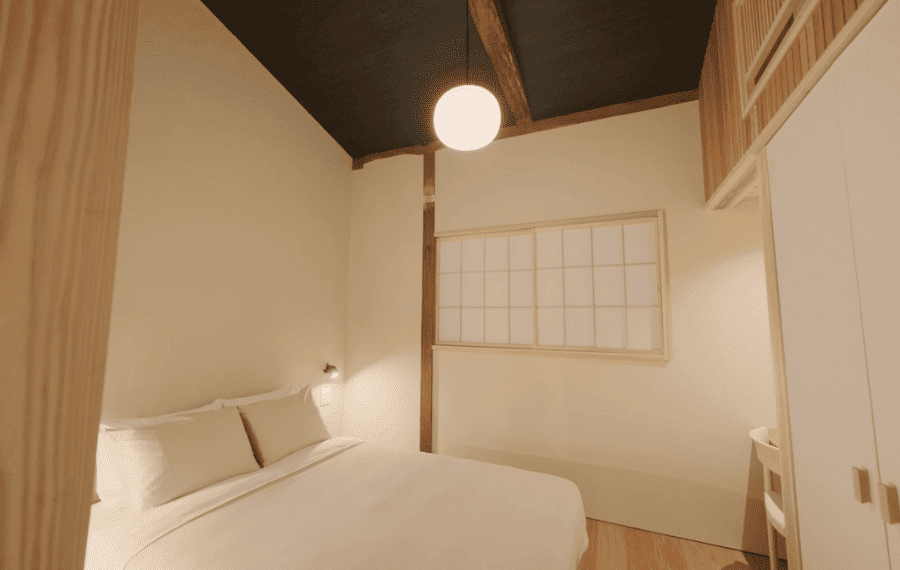 本物件の内装には、800年以上の歴史を紡ぐ京都・黒谷和紙を、和紙作家・ハタノワタル氏の手によって贅沢にあしらいました。壁や扉、襖にいたるまで和紙のぬくもりと質感が息づき、伝統の美と現代の心地よさとが調和した空間に仕上がっています。