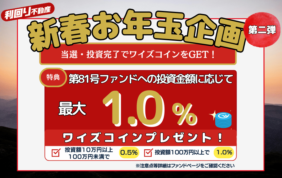現在募集中の81号ファンド(湘南オーシャンフロント邸宅)を対象としたお年玉キャンペーンにつきまして、特典を追加いたしました!
