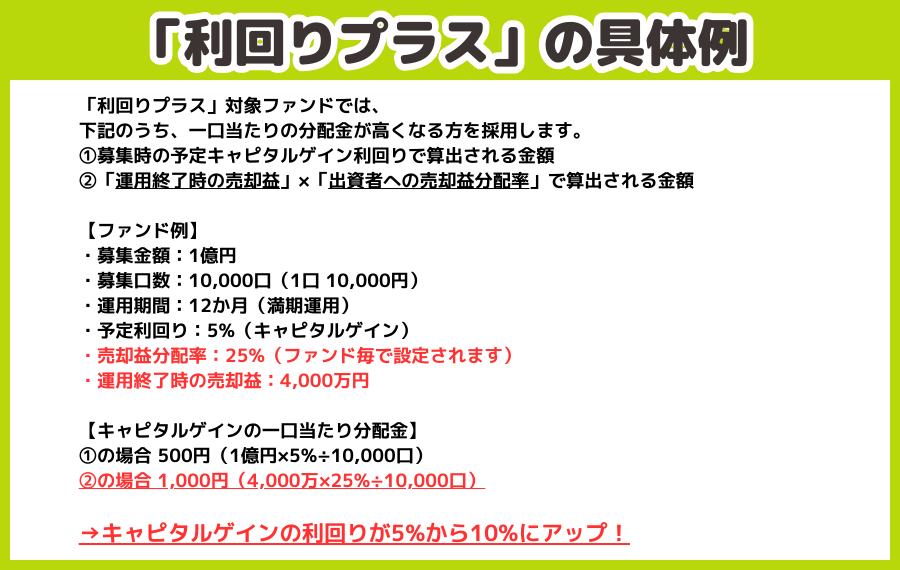 本ファンドは出資金の元本保証をするものではありません。また、利回りは想定であり、分配金のお支払いを保証するものではありません。